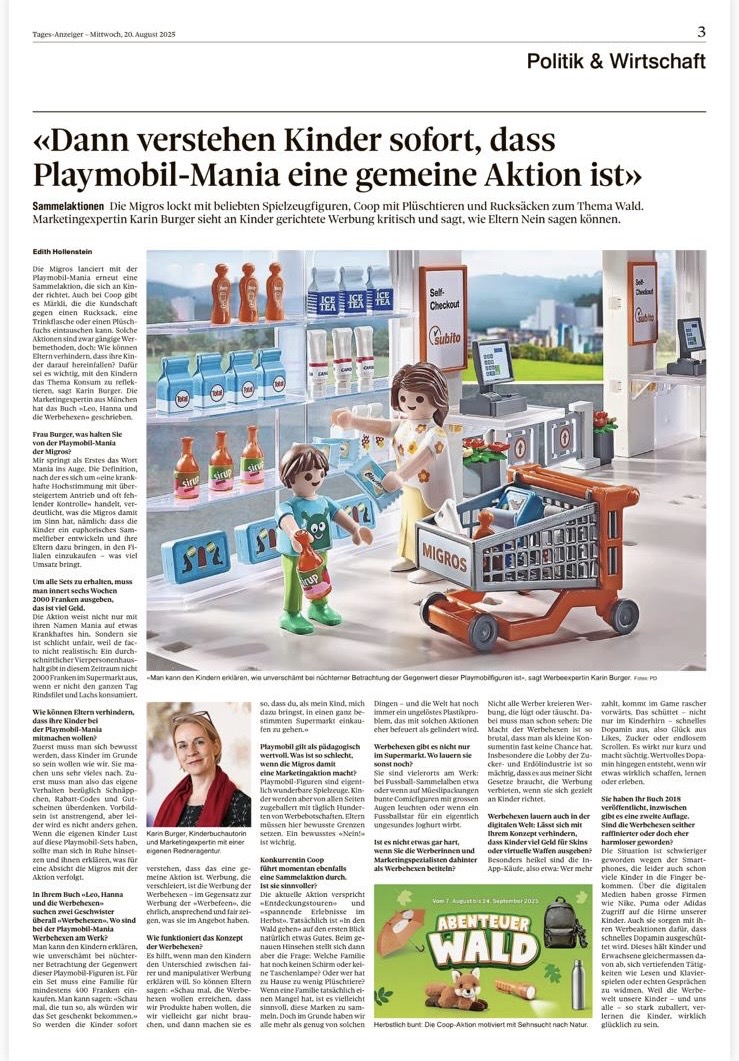 Interview mit Karin Burger, Marketing-Expertin und Kinderbuch-Autorin Die Migros lanciert mit der Playmobil-Mania wiederum eine Sammelaktion, die sich an Kinder richtet. Auch bei Coop und ...